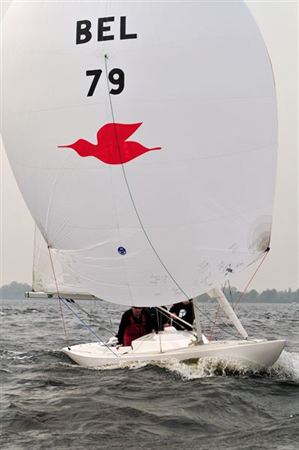 Alex è uno snipista belga che regata anche in Dragone. Gli amici dello Snipe gli hanno regalato per il matrimonio questo bellissimo spinnaker!