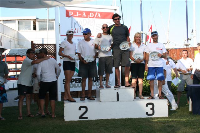Per me e Marinella è stato motivo di orgoglio concludere la regata sul podio, terzi, a fianco dei due equipaggi extraterrestri. A posteriori il podio l'abbiamo ottenuto con il quarto posto di venerdì, nella prima prova, con un vento che per i nostri miseri 116 chili era fin troppo forte. Ho avuto la conferma che la vela è uno sport come gli altri. Se si dà il 100%, se quando si è stanchi non si molla, ma si resiste e si soffre, allora non ci si può rimproverare nulla e, in rapporto alle proprie possibilità, si avrà ottenuto un bel risultato. Per noi le regate non sono state semplici neppure domenica. Avevo scelto la randa e il fiocco più potenti, confidando in una brezza leggera. La brezza invece è entrata bella sostenuta e, mentre la maggior parte degli equipaggi portava la barca agevolmente in piena potenza, noi dovevamo cinghiare come pazzi ad ogni onda, lavorare di scotta, vang e archetto. Vedere Marinella tirare alle cinghie è stato un esempio a fare altrettanto e uno stimolo "a raschiare dal fondo del barile" le ultime energie rimaste. Un bel 10 alla mia prodiera!