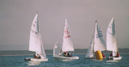 Ph: "La poppa viene impostata solo per tenere l'interno alla boa che precede l'ultimo lato: il traversino finale. Così è: ITA 30073 (come l'altr'anno) taglia per primo il traguardo nella prima prova della stagione. Segue, vicinissimo Testa con a prua il giovane Contini. Terzo un velocissimo