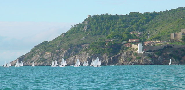 Innanzi tutto Talamone. Mentre in tutta Italia piogge e alluvioni si abbattevano implacabili, nonostante bollettini assai pessimistici, nonostante prevedibili e interminabili code per il ponte di Tutti i Santi, nonostante tradizionalmente la Nazionale di fine stagione sia spesso disertata da molti, nella nota Snipe Bay una quarantina di barche sono confluite. I timori per una bassa partecipazione ad una regata fissata molto in là nella stagione sono stati fugati. Il motivo? Sarebbe meglio dire i motivi. In primis, la scelta di una località splendida per paesaggio, che non ha deluso i frequentatori assidui e chi già la conosceva e ha meravigliato coloro che non l’avevano mai visitata: anche questa volta la Baia, nella sua veste autunnale, ha regalato scorci e colori incantevoli; poi il Circolo che, anche per chi ha girato molto il mondo delle regate, ha una sede incredibile: un faro a picco sul mare, che domina la Baia, chiusa a sud dall’Argentario, e un vasto tratto di mare dove si intravedono il Giglio, le Formiche di Grosseto e l’Elba; poi la flotta che può contare su una ventina di barche; infine, ma non ultima, l’ospitalità di Alessandro Testa, Gigi Addonisio, Franco Zamorani e di tutti gli amici del circolo di Talamone che hanno fatto di tutto per far sentire gli ospiti a loro agio (chi proviene da altre classi mi ha fatto notare una caratteristica peculiare della nostra Classe: gli snipisti che organizzano una regata ci tengono tantissimo e si impegnano moltissimo per fare una bella figura).
