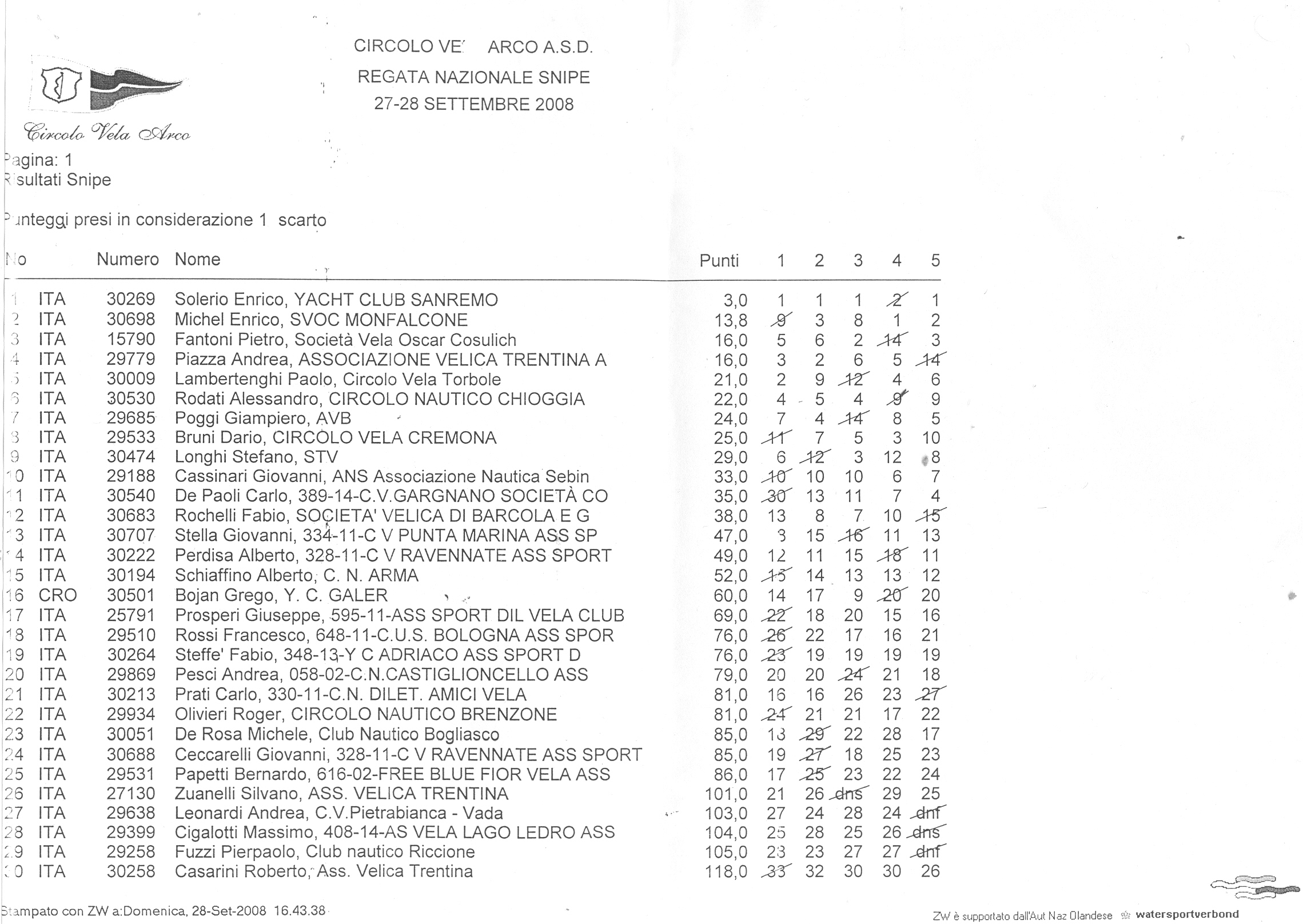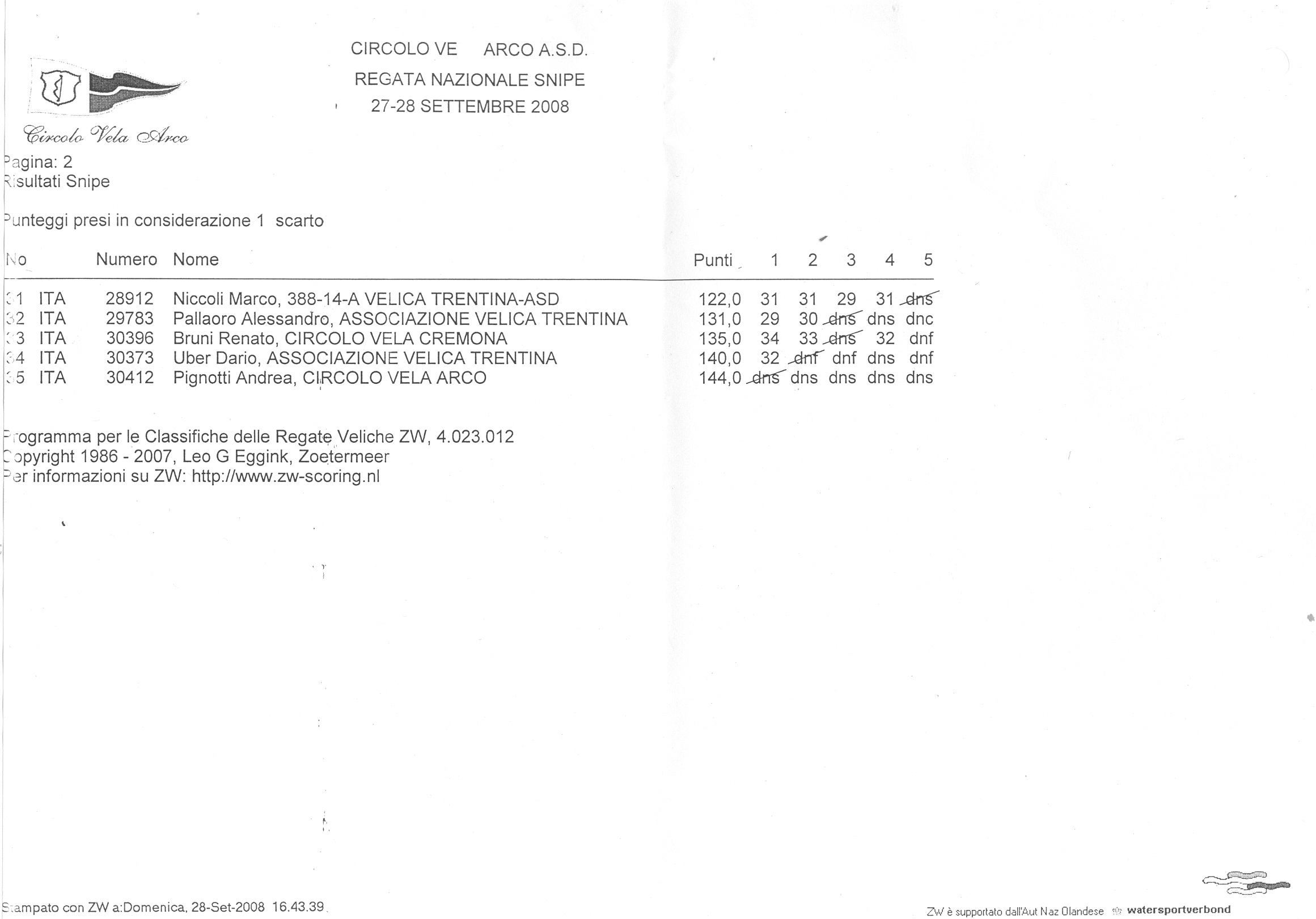 Arco, 29 settembre 2008. La classifica ed il commento di Andrea Piazza.