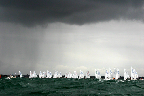 Il secondo giorno il vento è “leggero”: attorno ai 12-15 nodi nelle prime due prove e poi sui 20 nella terza. Longhi è ben avanti, ma si “incarta” sulla boa di bolina. Il “bordo bretone” con corrente contraria ed una fila ininterrotta di barche mure a dritta non è consigliabile! Finisce comunque 16. Si rifà nella prova successiva con un ottimo quarto. Tomsic con Totti (come è stato soprannominato - per la capigliatura - Andrej dai Norvegesi) piazza due dodicesimi, a testimonianza della sua predilezione per venti più sostenuti. I fratelli Solerio incappano in un 29 e 17. Io con Jacopo piazzo un 14 e un 20 (sempre con un lasco sì e uno no). Rodati è alterno con un 37 ed un ottimo 10. Paolillo ha finalmente un vento per lui accettabile (13 e 26), mentre Rochelli chiude al 33 e al 23. Al vertice la prima regata viene vinta dallo juniores spagnolo Triay. Sanchez è un rullo compressore (2 e 1). Emerge la classe e l’esperienza del multicampione mondiale ed europeo Gancedo (3 e 2).