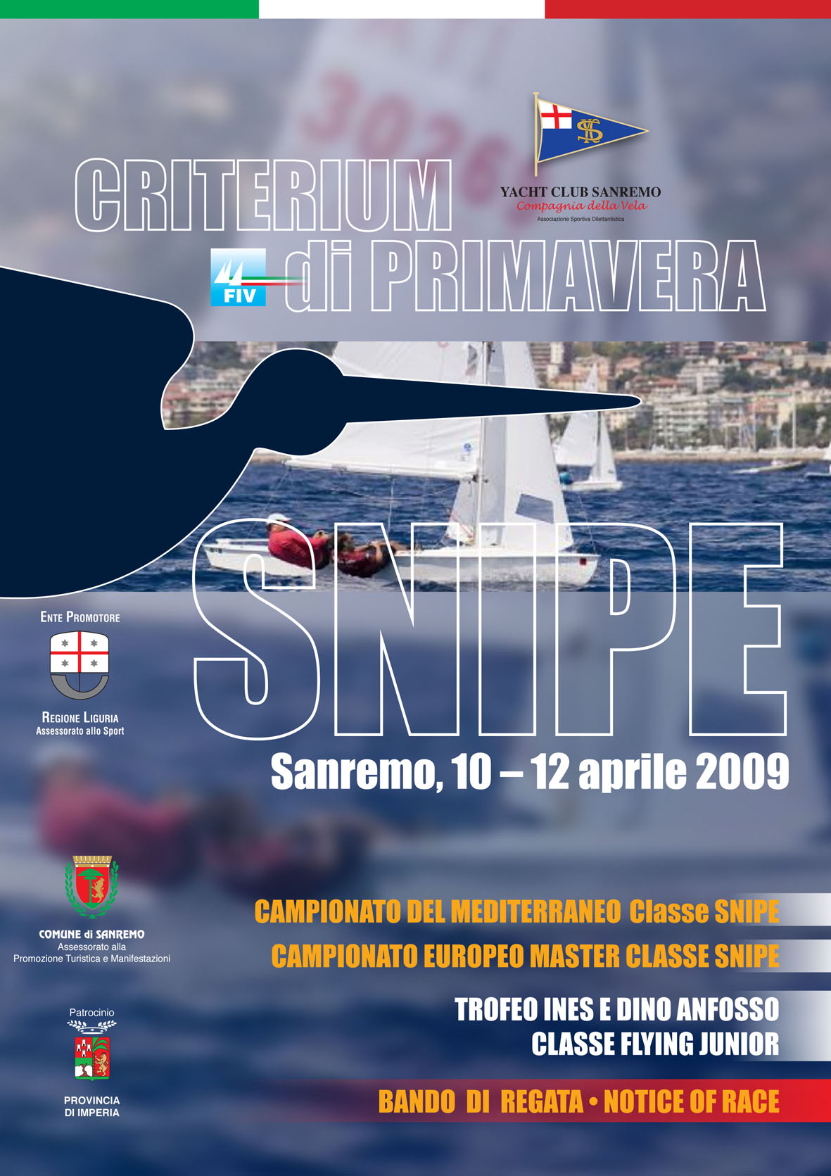 L’apertura del Criterium di Primavera è prevista per venerdì, con le prime regate degli snipe; da sabato scenderanno in mare anche i Flying Junior, per poi chiudere le prove domenica. Come di consueto la premiazione si svolgerà allo Yacht Club Sanremo nel pomeriggio di Pasqua.