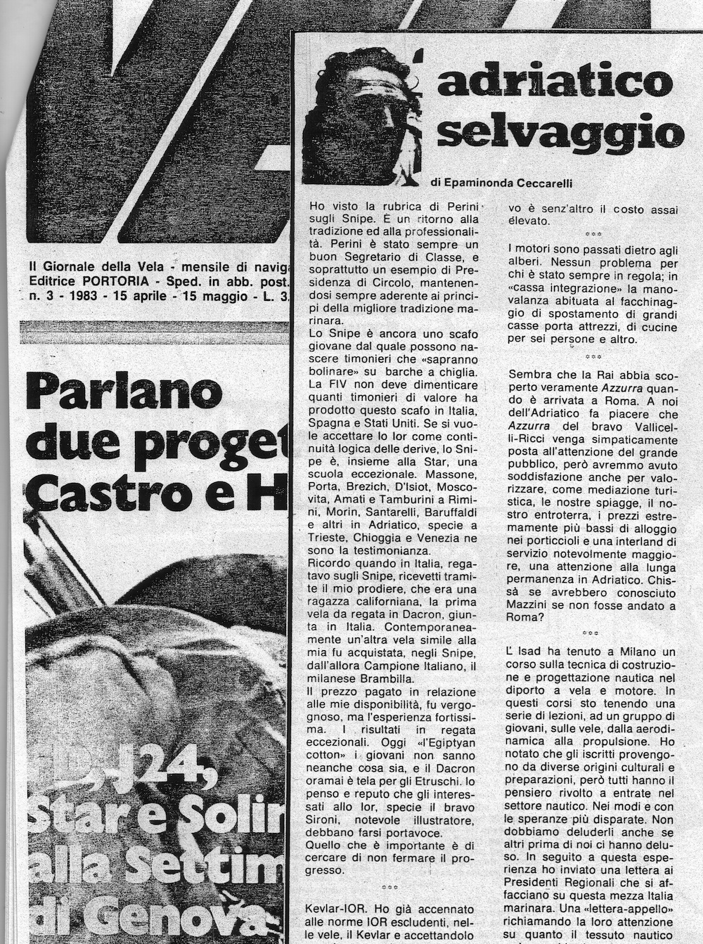 Pubblichiamo un articolo del Giornale della Vela del 1983, scritto da Epaminonda Ceccarelli.