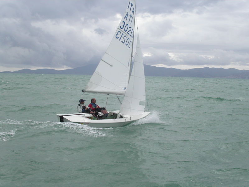 Domenica sembra di essere in una giornata di maggio. E' anche il compleanno del nostro Segretario nazionale, appositamente giunto a Talamone per festeggiare il compimento dei suoi primi quarant'anni! Sole, 20 gradi e maniche corte. Sembra che ci attenda una giornata di bonaccia ma, per l'orario di partenza, entra un po' di scirocchetto sugli otto nodi di intensità. Io e Johnny Estrella decidiamo di fare una partenza un po' tirata (forse troppo) in boa, ma mi trovo Pantano, che è fuori, sulle vele. Devo virare mentre lui rientra. Così faccio la bolina dalla parte che non volevo (a destra). Alla fine della bolina siamo comunque secondi dietro a Perdisa - Joime. Alla boa di poppa ci prendiamo l'interno e la regata per noi finisce. Dietro invece lotta tra Rodati, Pantano e Perdisa che chiudono in quest'ordine.