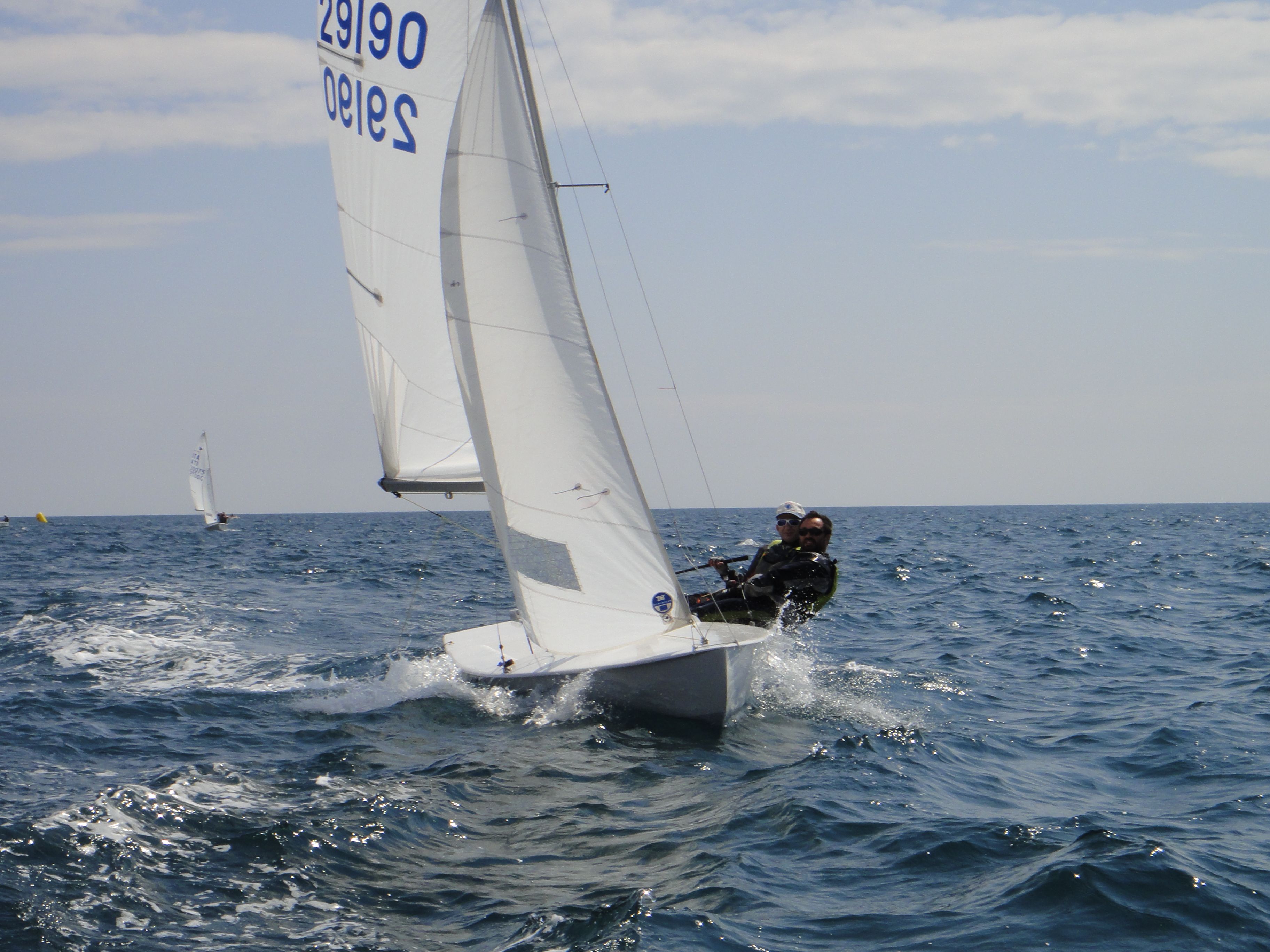 Nella seconda prova, che l'aria si è ulteriormente stemperata, agganciamo subito dopo la partenza due dei piani altissimi della classifica.. ma come vuole un'antica e rispettatissima tradizione, li agganciamo esattamente all'inizio della prova che scarteranno.. e alla prima boa siamo già esimi.
